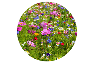 Adonisröschen (Adonis aestivalis); Kornrade (Agrostemma githago); Kornblume (Centaurea cyanus); Schmuckkörbchen (Cosmos bipinnatus); Lupine (Lupinus angustifolius); Bechermalve (Lavatera trimestris); Margerite (Chrysanthemum); Natternkopf (Echium); Ringelblume (Calendula); Silberkraut (Lobularia maritima); Schleierkraut (Gypsophila elegans); Kalifornischer Mohn (Eschscholzia californica); Sonnenblume (Helianthus annuus); Klatschmohn (Papaver rhoeas); Bienenfreund (Phacelia tanacetifolia b.); Resede (Reseda); Sonnenhut (Echinacea); Skabiose (Scabiosa); Studentenblume (Tagetes); Große Kapuzinerkresse (Tropaeolum majus); Zinnie (Zinnia elegans); Klee-Arten wie Rotklee, Inkarnatklee, Hornklee (Trifolium); Borretsch (Borago officinalis); Sommerwicke (Vicia sativa)