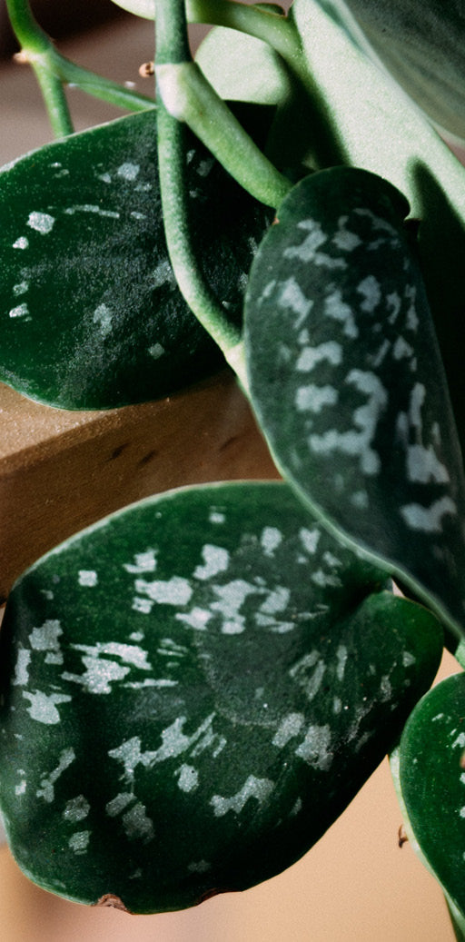 • Tiefgrüne, herzförmige Blätter mit silbernen Verzierungen