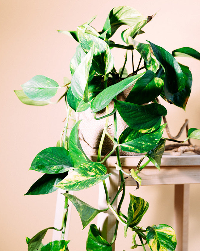 Die Goldene Efeutute ist eine farbenfrohe, pflegeleichte Mitbewohnerin, die perfekt für Einsteiger geeignet ist. Ihre herzförmigen, grüngelben Blätter bilden schöne Akzente in jedem Raum und sollen dazu noch luftreinigende Eigenschaften haben. Ihre Blätter können in ihrer Heimat – den Waldgebieten Südostasiens – bis zu 1 m groß werden. Bei uns sind die auffälligen Blätter deutlich kleiner und erstrahlen sowohl im Hängetopf als auch als Kletterpflanze an einem Moosstab. Wenn du unsere Goldene Efeutute kaufst, liefern wir eine kräftige Pflanze zu dir nach Hause. Die mittelgroße Pflanze bleibt in der Regel zwischen 1 und 2 m groß.