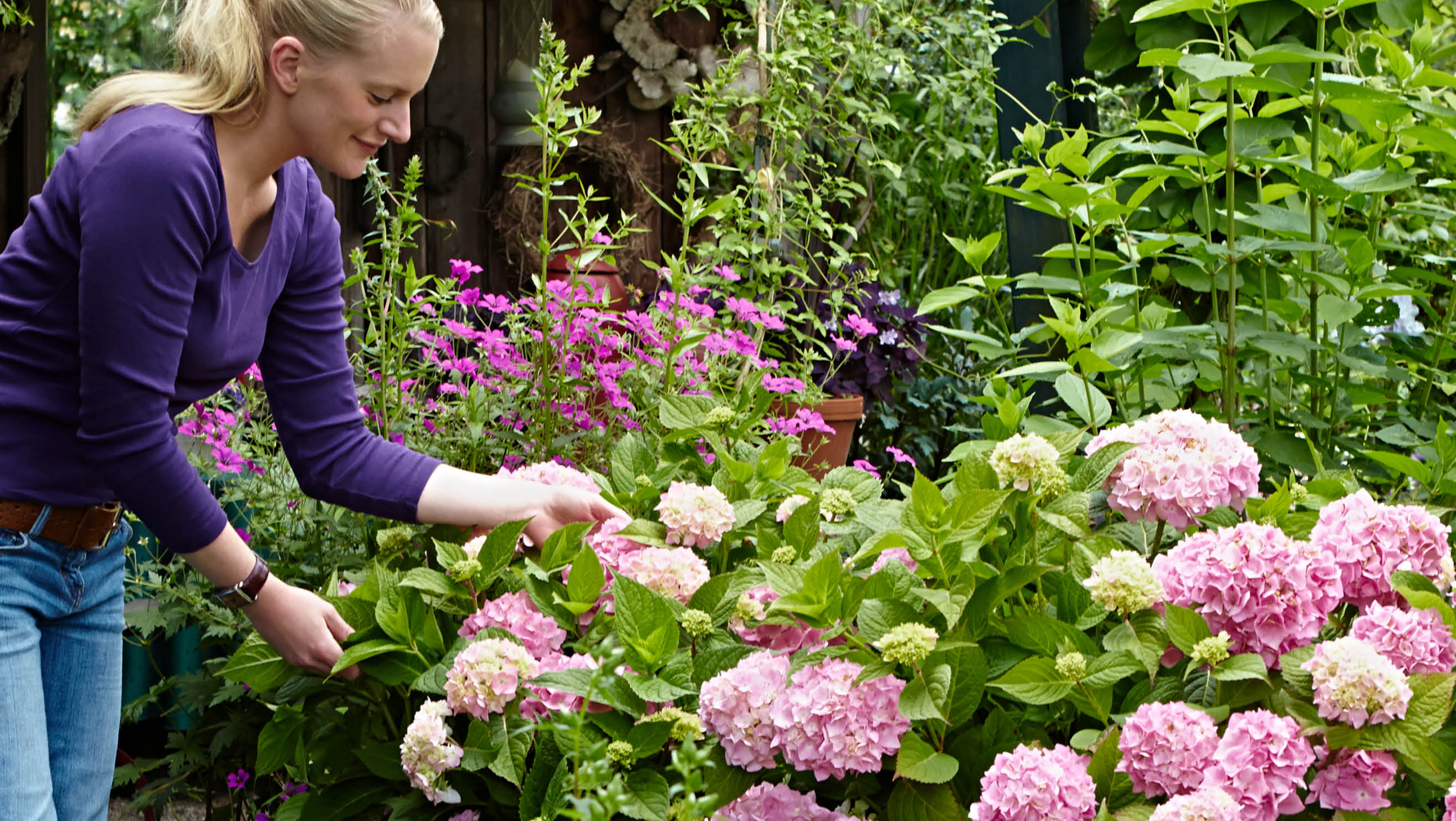 Die Hortensien der Endless Summer®-Familie waren weltweit die ersten Sorten, die am alten und am neuen Holz blühen. Deshalb blühen sie unermüdlich über den gesamten Sommer in farbenprächtiger Fülle. >