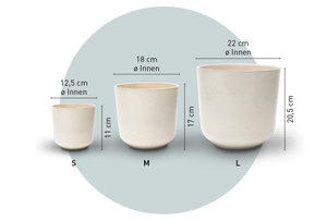 Unsere Übertöpfe bestehen aus nachhaltigen Materialien wie Seegras oder biologisch abbaubaren Pflanzenfasern.