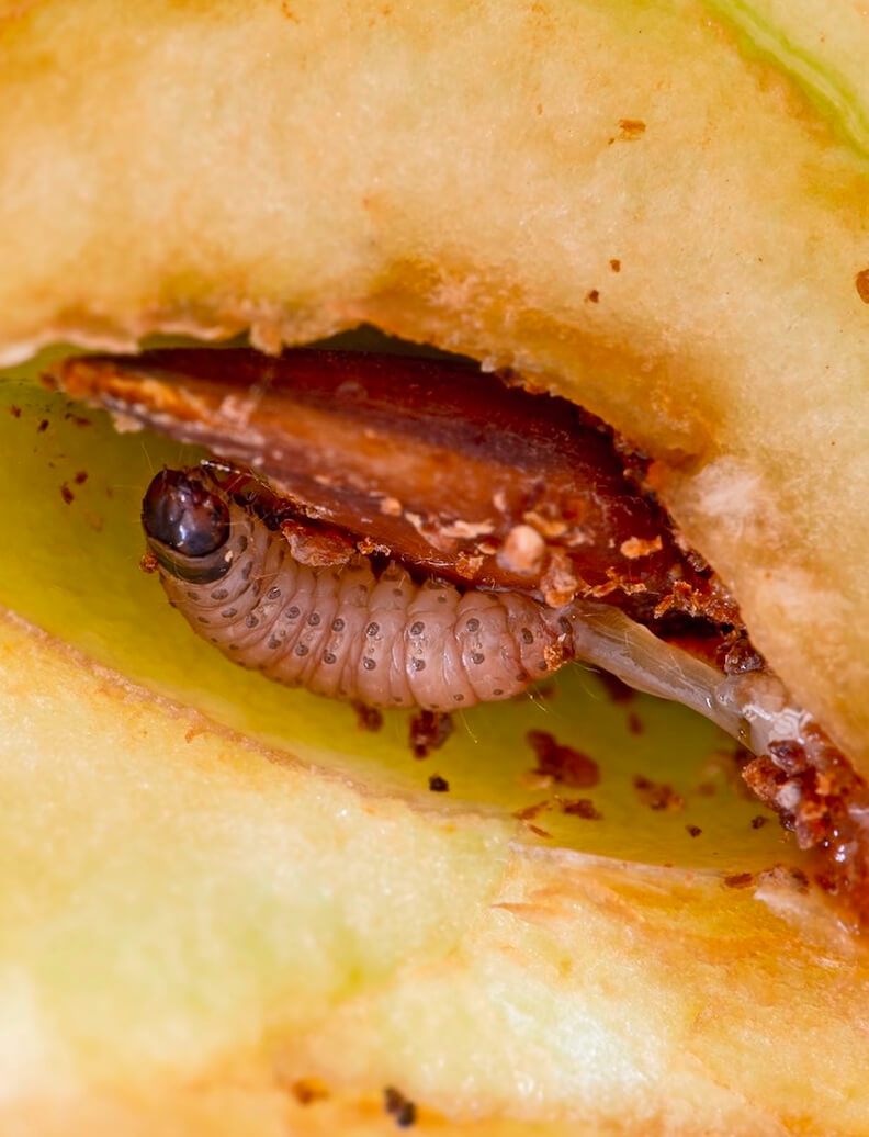 Diese winzigen Nützlinge sind die ultimative Lösung, um Apfelwicklerlarven an Obstbäumen gezielt zu bekämpfen. Die Larven überwintern geschützt hinter der rauen Baumrinde. Genau hier setzen unsere SF-Nematoden an: Sie spüren die Larven aktiv auf und stoppen den Befall direkt. Für eine ideale Wirksamkeit liefern wir unsere SF-Nematoden inklusive eines speziellen Netzmittels. Dieses Duo ist die beste Kombination gegen Apfelwickler, denn das Netzmittel sorgt für eine ideale Verteilung der Nematoden auf der Baumrinde und verbessert deren Kontakt zu den Larven.